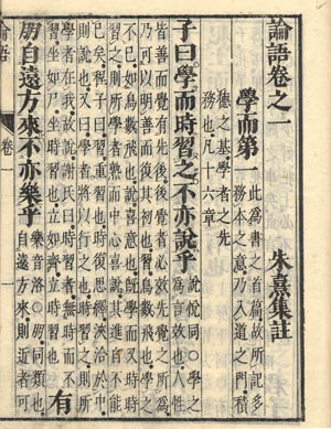 | The importance of education and study is a fundamental theme of the Analects. For Confucius, a good student respects and learns from the words and deeds of his teacher, and a good teacher is someone older, who is familiar with the ways of the past and the practices of antiquity. Confucius emphasized the need to find balance between formal study and intuitive self-reflection. When teaching, he is never cited in the Analects as lecturing at length about any subject, instead he challenged his students to discover the truth by asking direct questions,citing passages from the classics, and using analogies. He sometimes required his students to demonstrate their understanding of subjects by making intuitive conceptual leaps before accepting their understanding and discussing those subjects at greater levels of depth. The Four Books are Chinese classic texts that illustrate the core value and belief systems in Confucianism. They were selected by Zhu Xi in the Song Dynasty to serve as general introduction to Confucian thought, and they were, in the Ming and Qing dynasties, made the core of the official curriculum for the civil service examinations. | ||||||||||||||||||